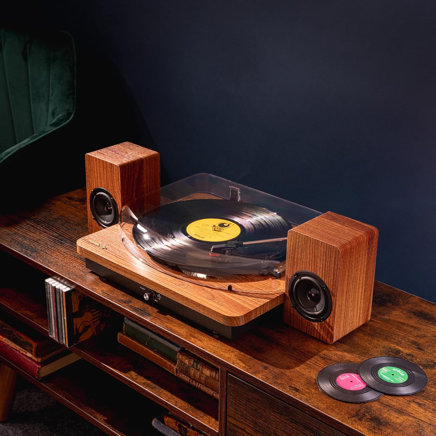 Equipped with two 3-inch speakers producing 15W each, enjoy clear, robust audio that fills any room. The 4Ω speaker impedance ensures consistent performance, making your favourite records sound incredible.