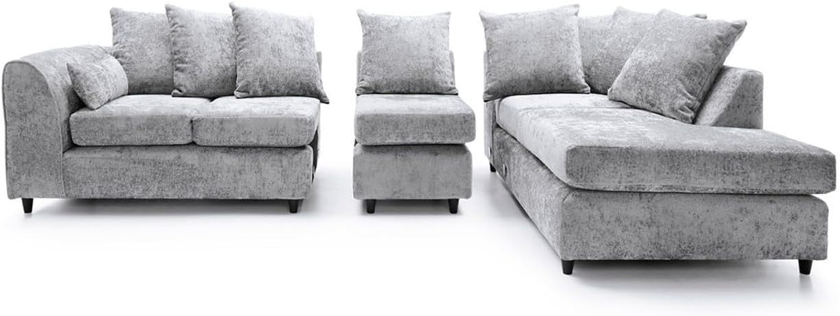5 Seater L Shape Sofa Corner Unit – Light Grey RH Scatter Back Couch