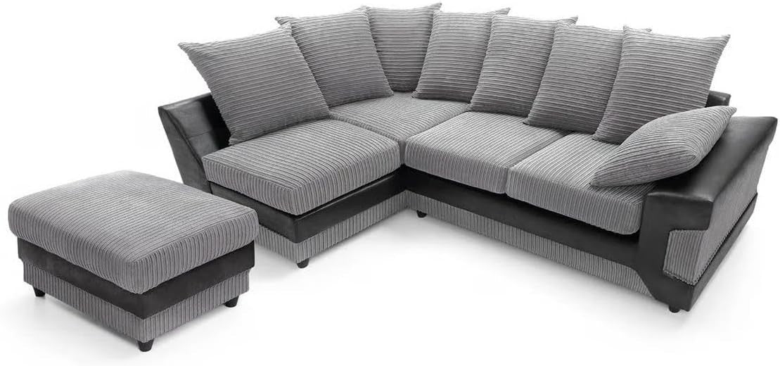 5 Seater L-Shaped Corner Sofa - Durable Jumbo Cord & Faux Leather Couch