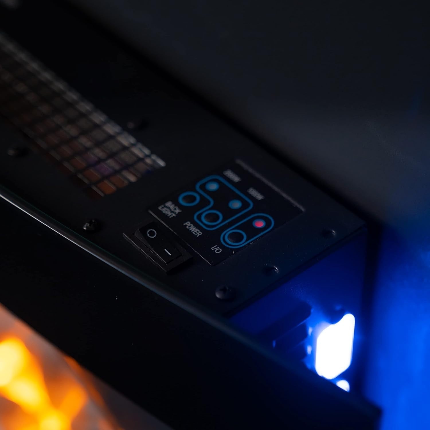 Choose from 7 dynamic flame colors and side LEDs to create the perfect ambiance. This electric fireplace uses only 5 watts of power, making it extremely energy-efficient and cost-effective to run for hours.