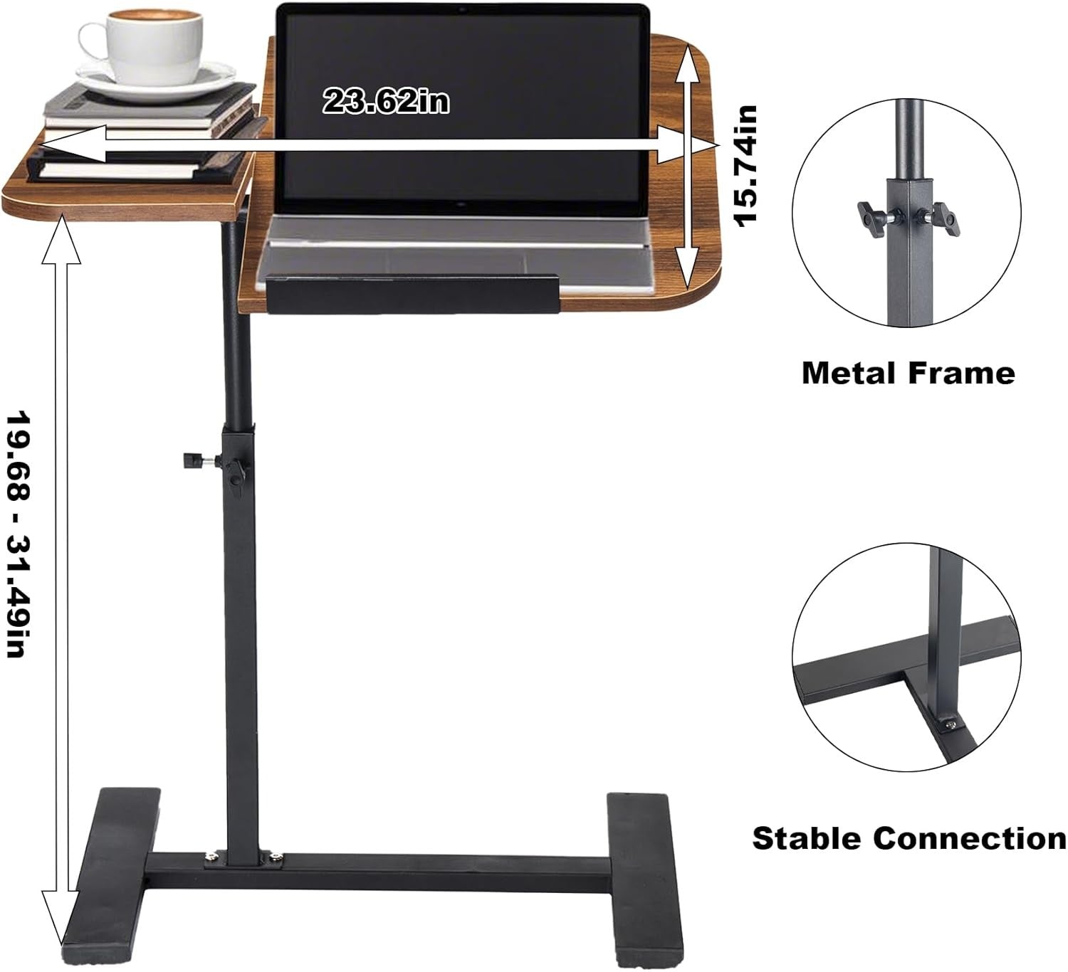 C Shaped Adjustable Sofa Side Table Laptop Desk 360° Swivel Walnut Top