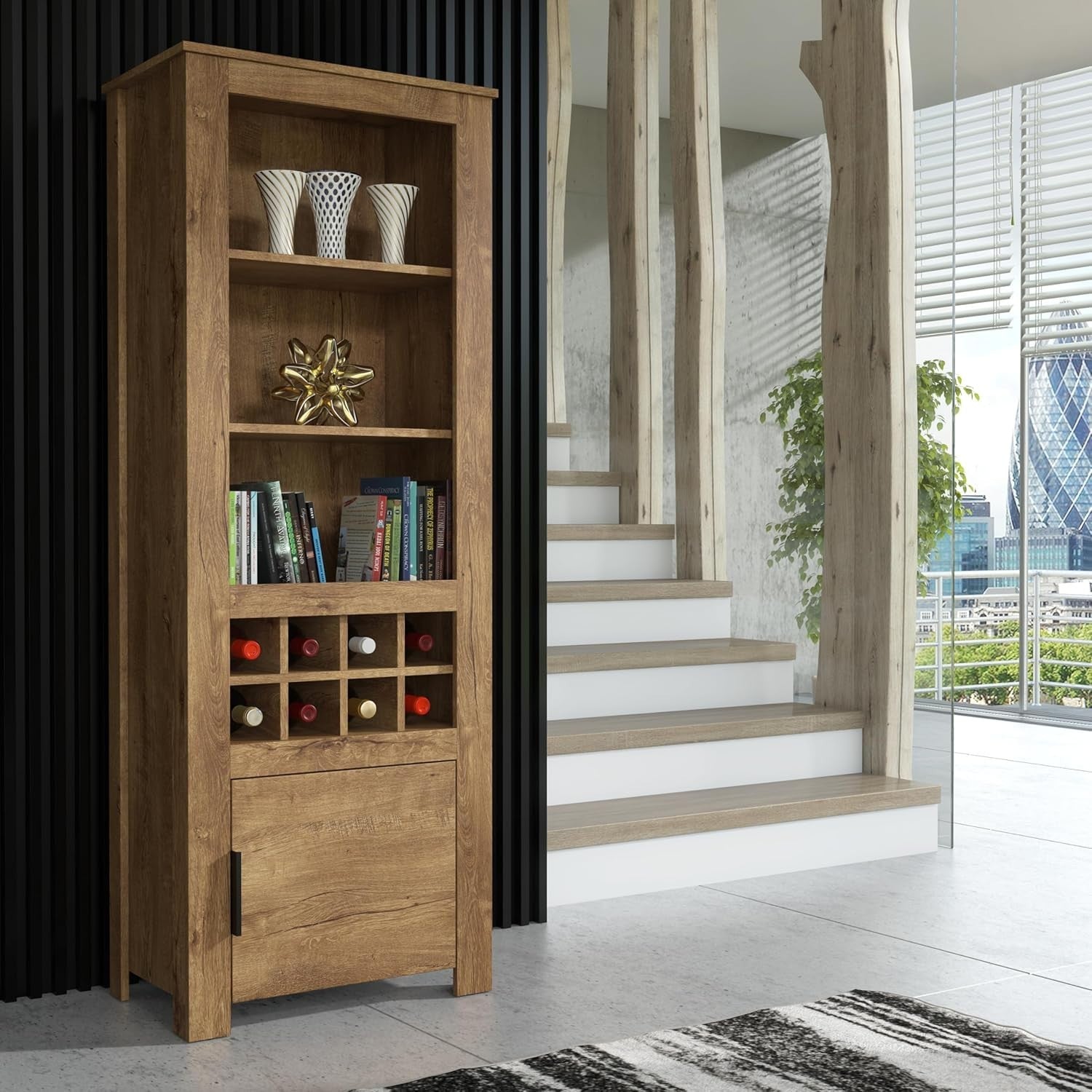 Dark Oak Display Cabinet with Wine Rack & LED Lighting | Tall Bar Storage Unit