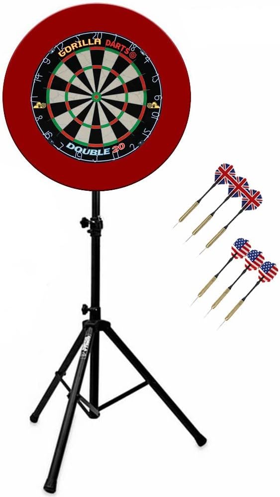 Includes sisal dartboard surround adjustable tripod stand and 6 darts for a full ready to play setup.