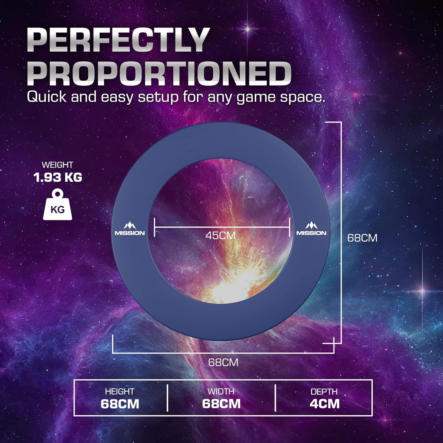 Fits all standard dartboards with 45cm inner opening and 68cm outer size for a secure fit.