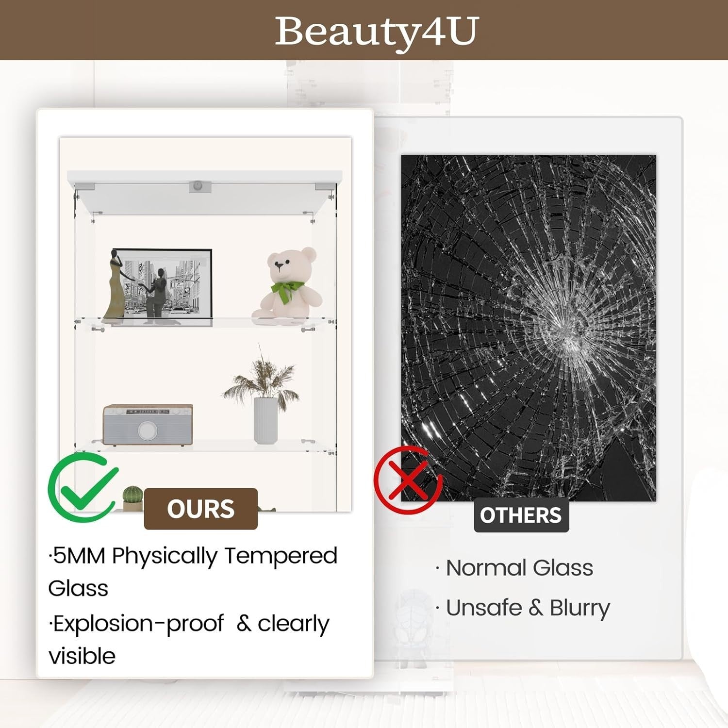 Made with 5mm thick tempered glass, this cabinet is explosion-proof and shatter-resistant. The bumper strip protects edges for extra safety and longevity.