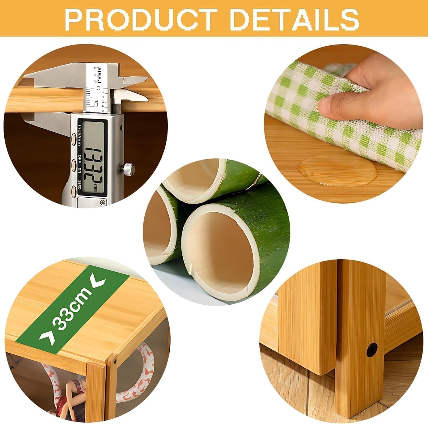 Bamboo offers exceptional strength, stability and moisture resistance β perfect for everyday household use. Acrylic glass is durable, safe, and easy to wipe clean.