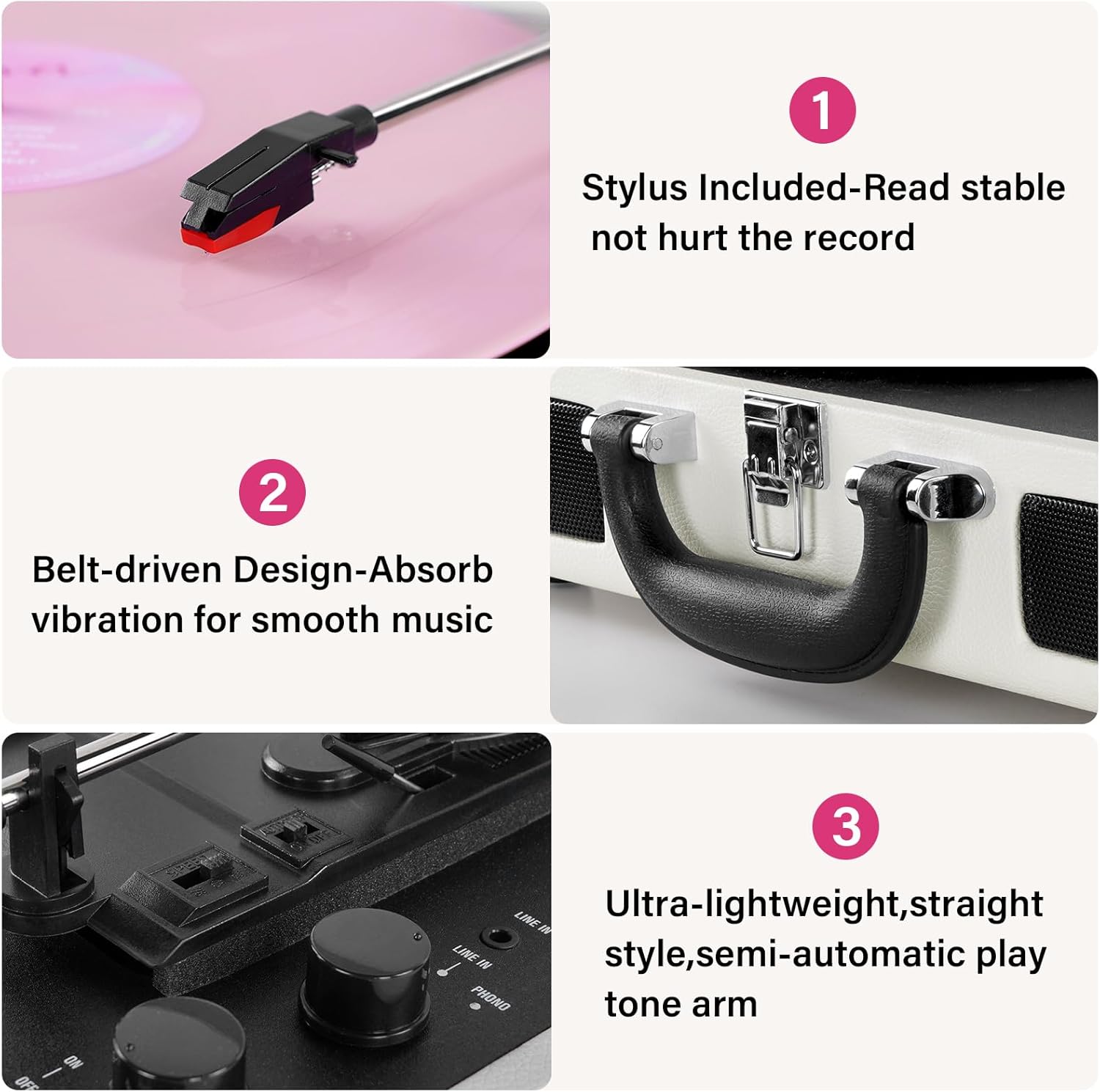 Portable Bluetooth 3-Speed Vinyl Record Player with Built-In Speakers