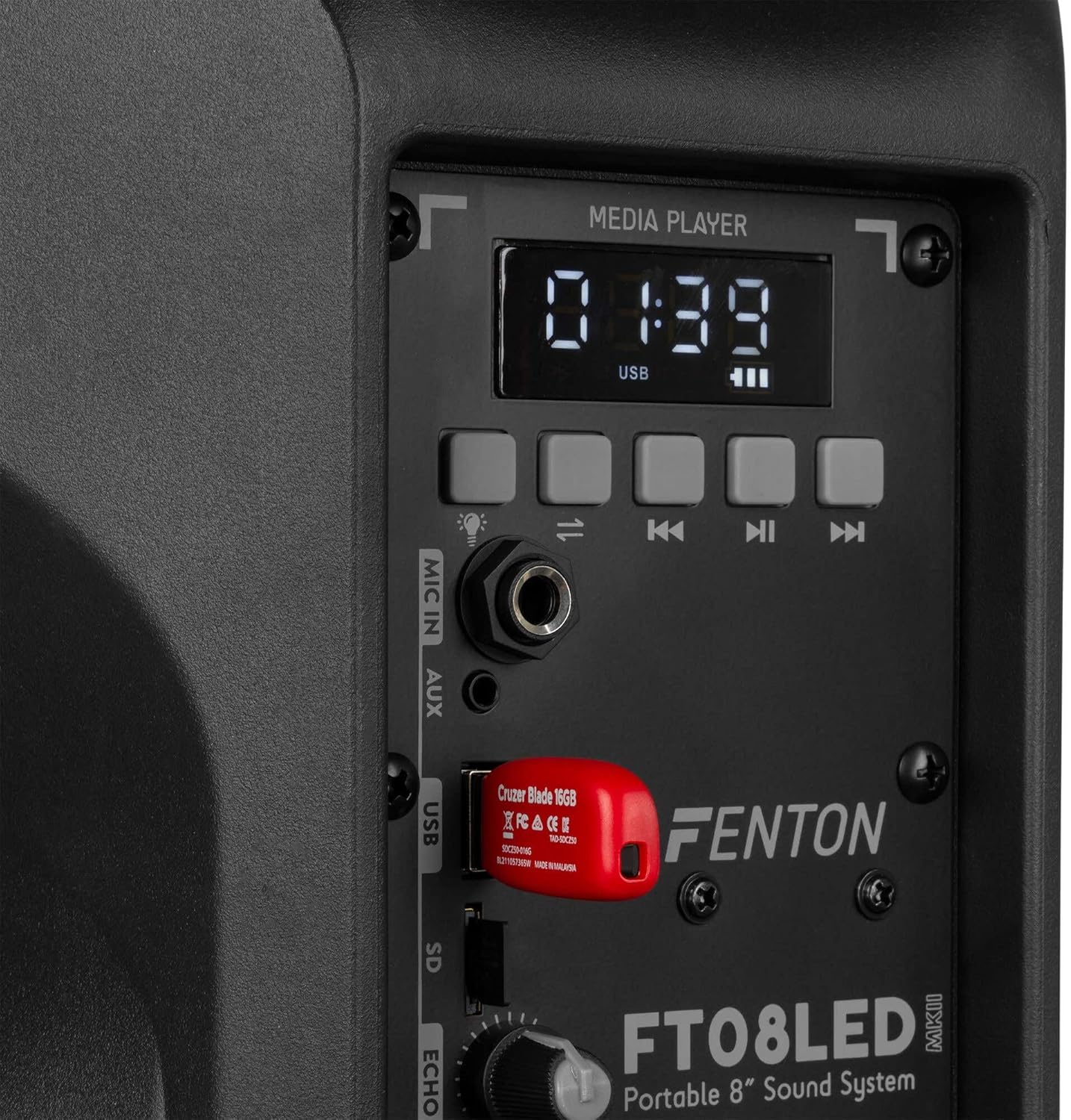 Supports USB SD card AUX and mic input with echo effect for flexible audio control.