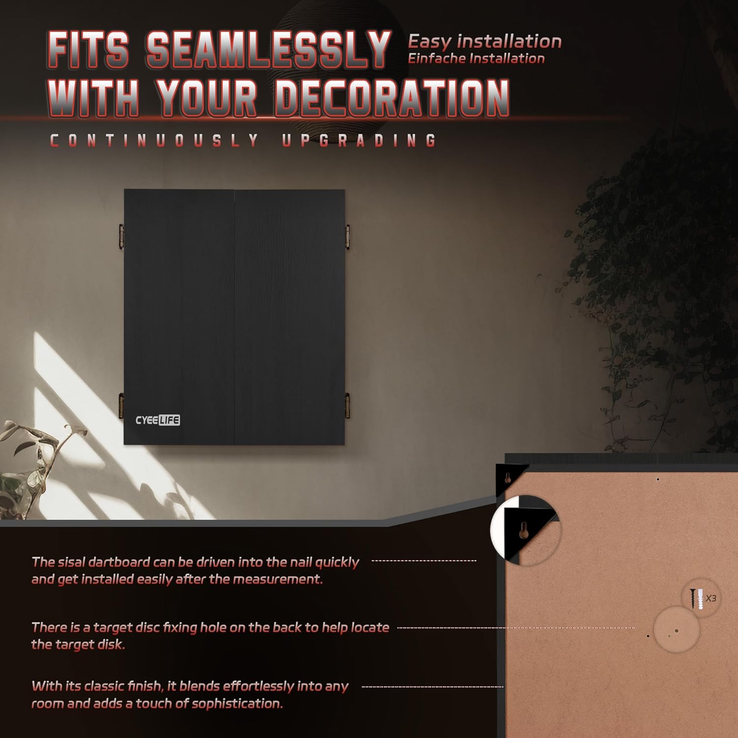 Designed for standard 45cm dartboards protects against dust moisture and wall damage from missed throws.