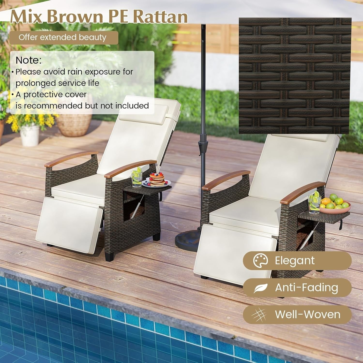 Great for home offices, quiet corners, poolside lounging, or anyone who values adjustable comfort and practical design.